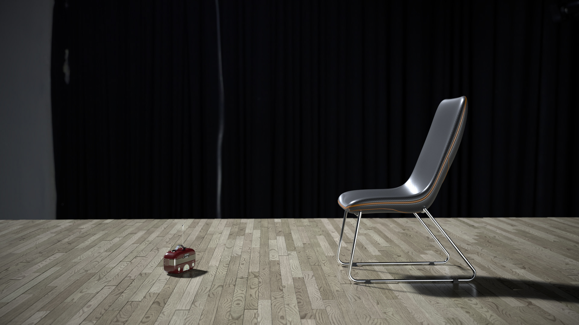 This is a model of a chair with a full leather seat and chrome legs. It is modelled and rendered using 3ds Max and Chaos Vray.