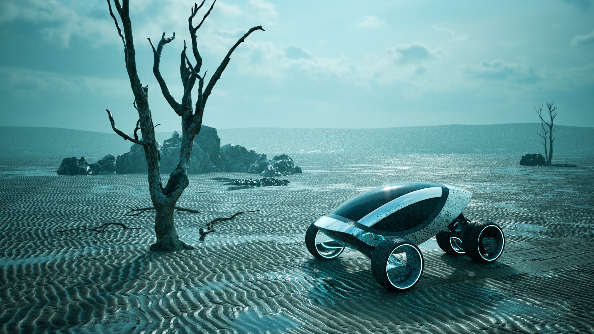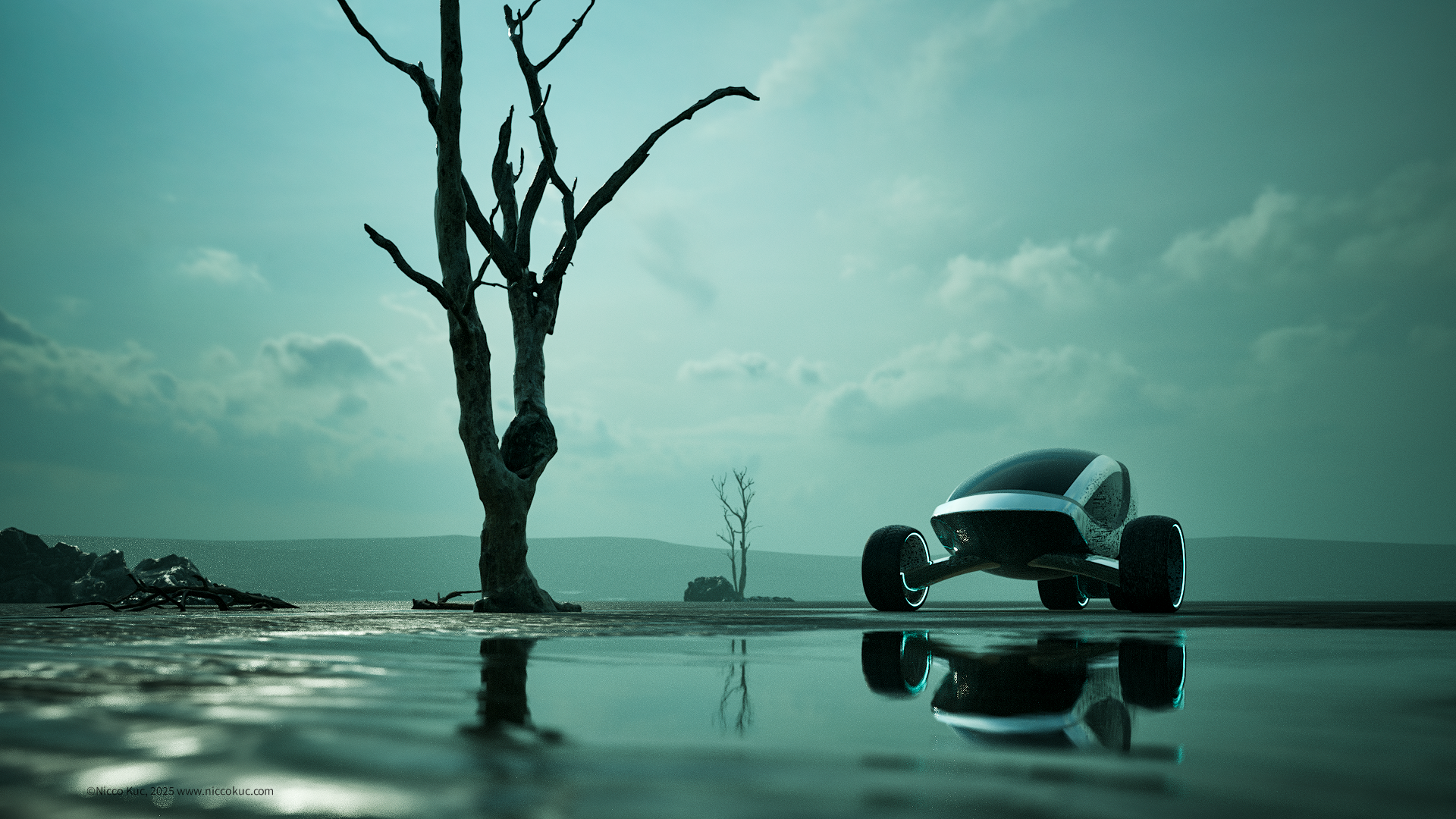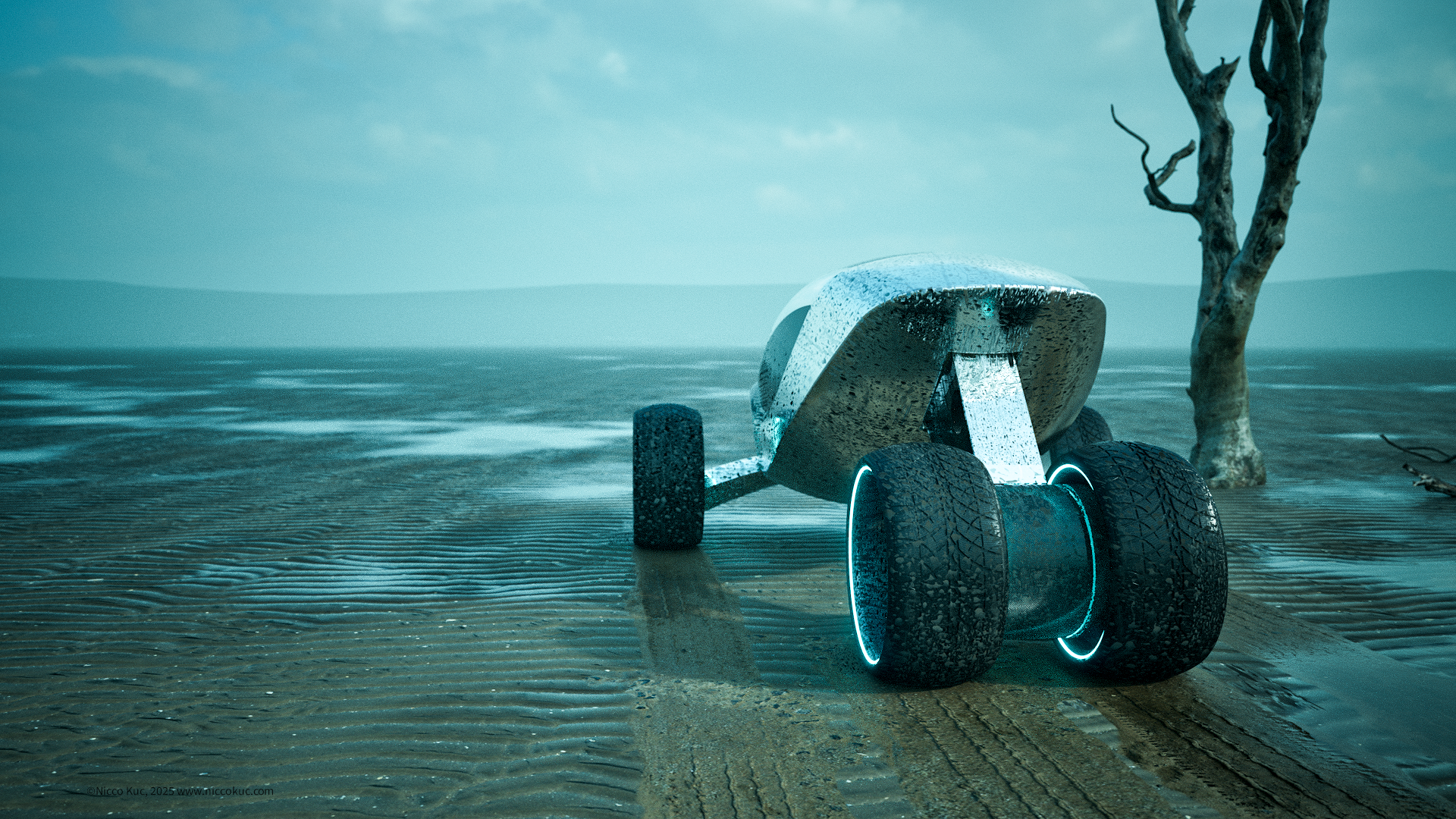 Welcome to EVOR/01 (Electric Vehicle Off-Road). This electric off-road concept vehicle is designed for fast, rugged transport in extreme environments. Built as a two-seater maximum, it prioritizes performance over comfort, featuring a rear-wheel-dominant electric drivetrain that delivers high torque and rapid acceleration across sand, salt flats, and unstable terrain. The wide stance, oversized rear wheels, and compact cabin emphasize traction, control, and durability, while the smooth protective shell contrasts with exposed mechanical elements to highlight function-driven design. This project explores minimalist future mobility, where speed, resilience, and electric power define transportation beyond conventional roads.