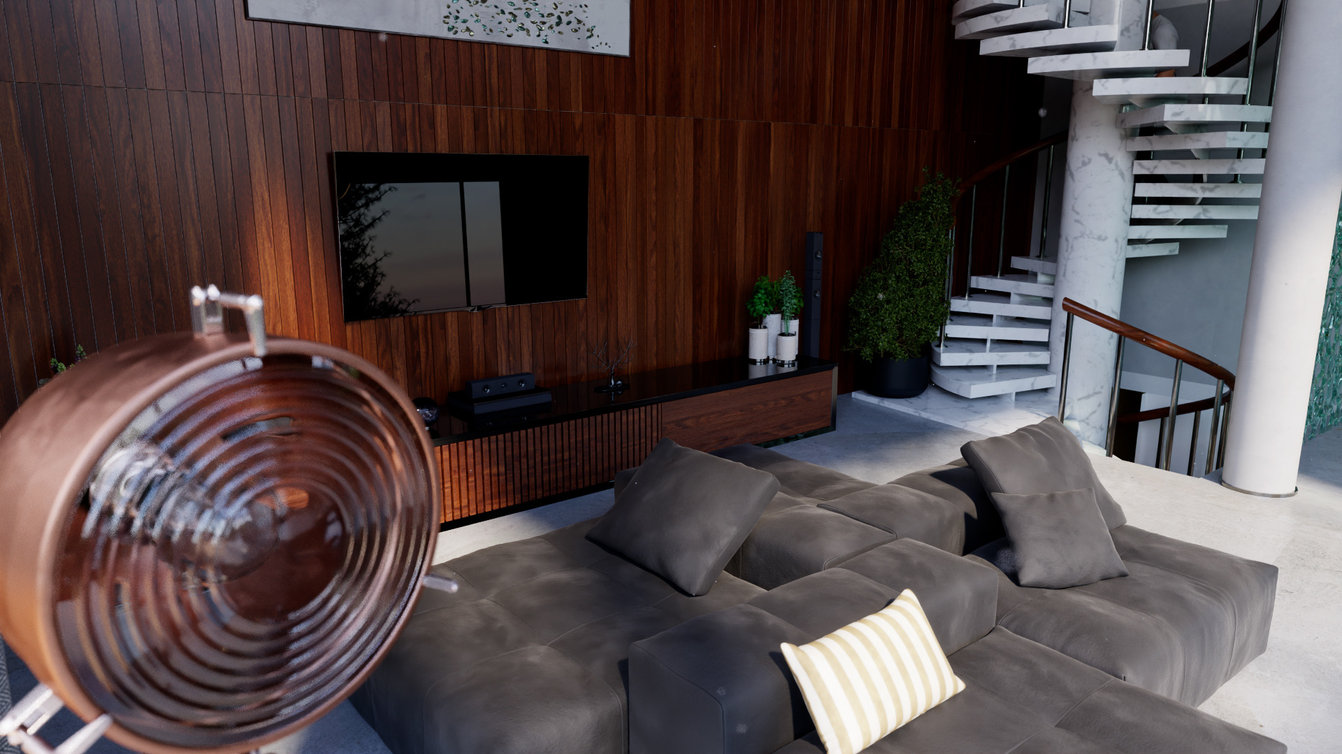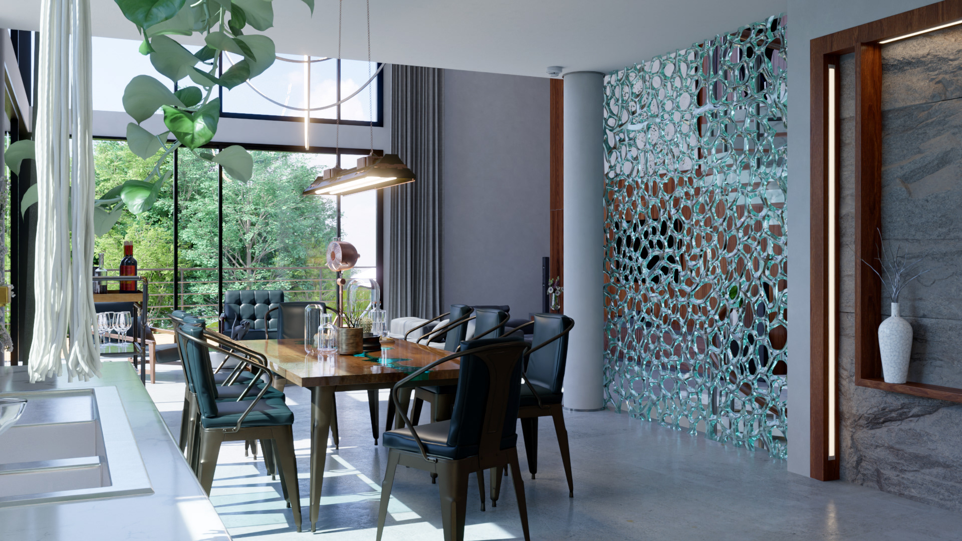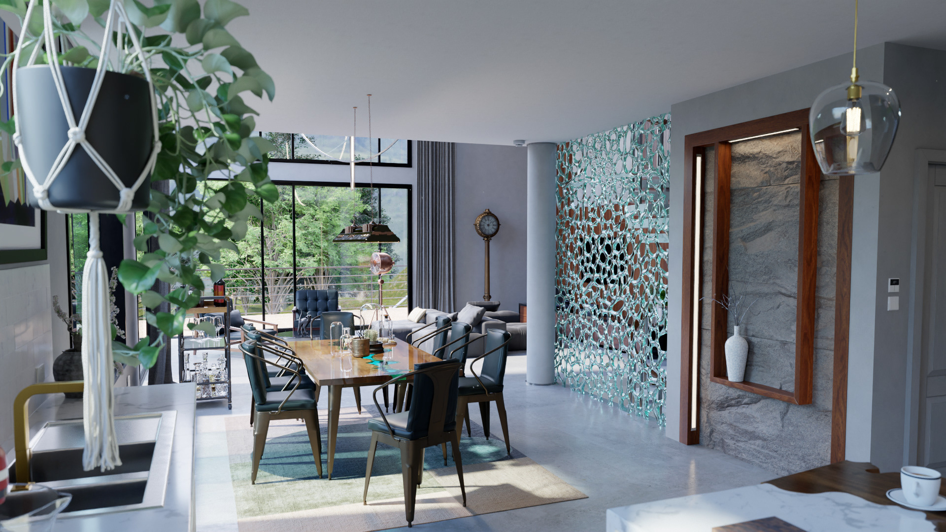 l 3D interior visualization inspired by the Zack DeVito House, showcasing the kitchen, dining room, lounge area and bedroom with a focus on realism, lighting and spatial composition. The project combines Autodesk 3ds Max for modeling, Chaos Vantage for real-time ray tracing, Chaos Anima 6 for animated characters, and Evermotion assets for high-quality furniture and interior details. The goal of this project is to demonstrate how thoughtful design, accurate materials and efficient workflows can produce photorealistic and cinematic results suitable for architecture, real estate and creative storytelling.