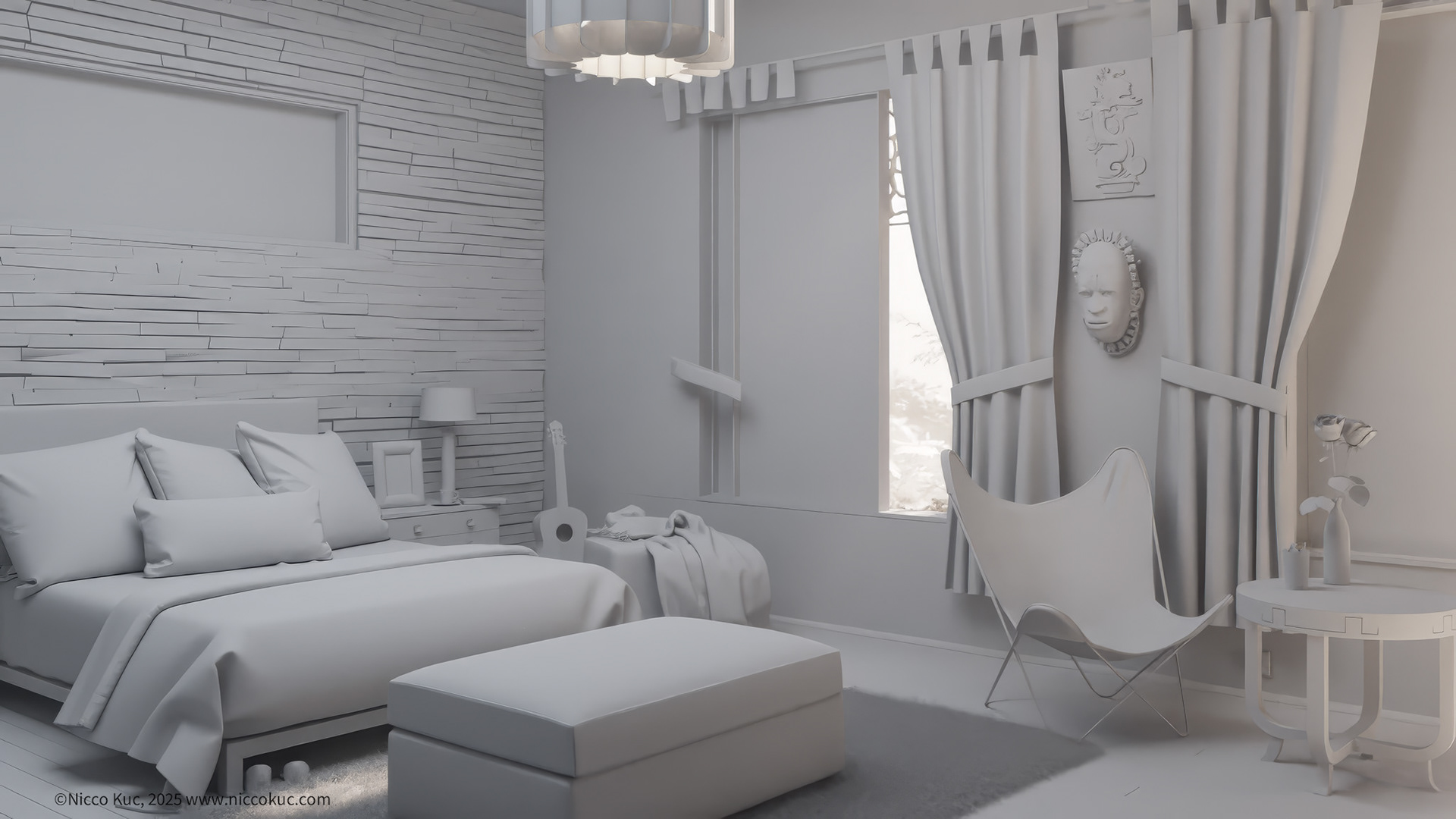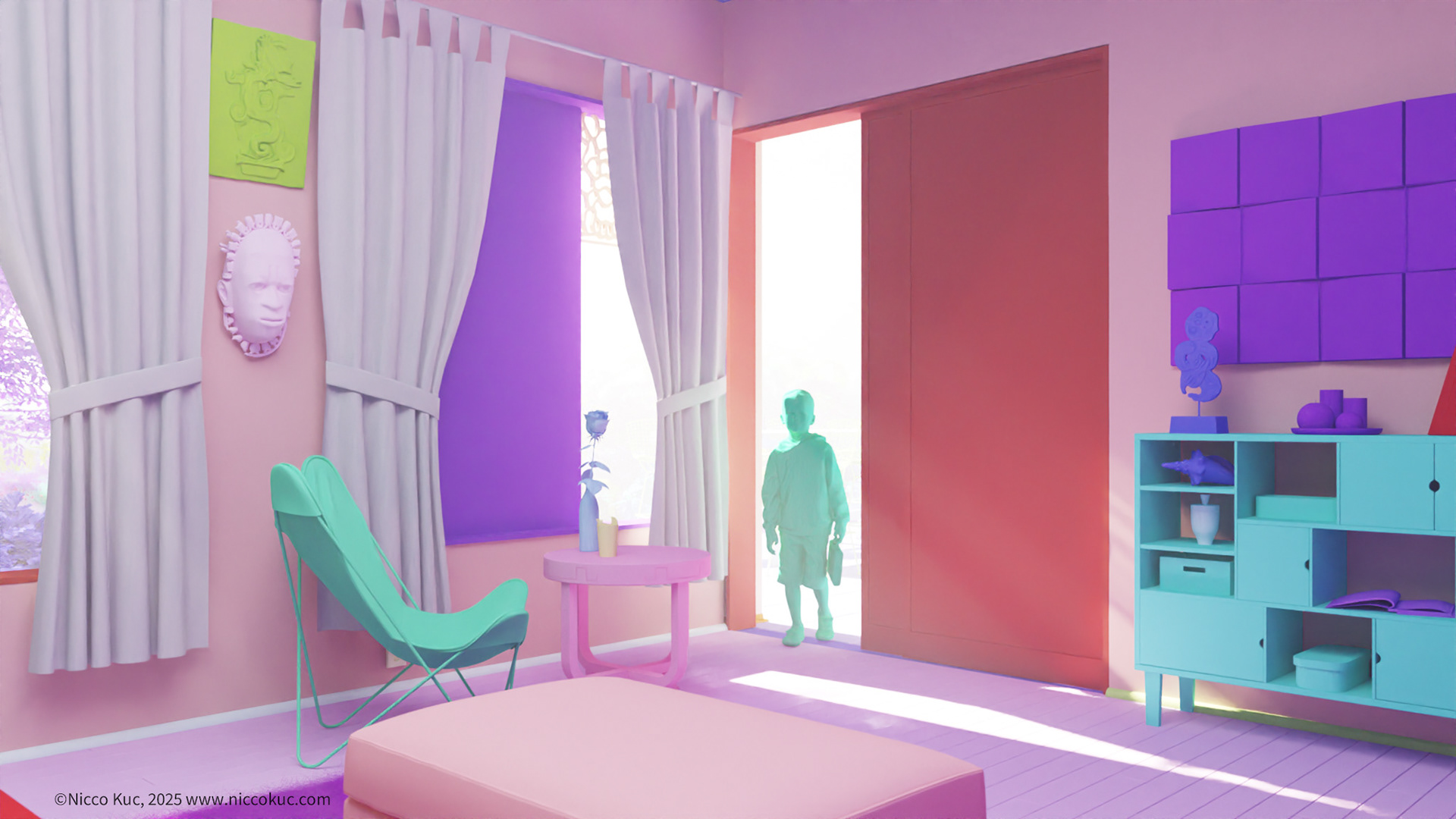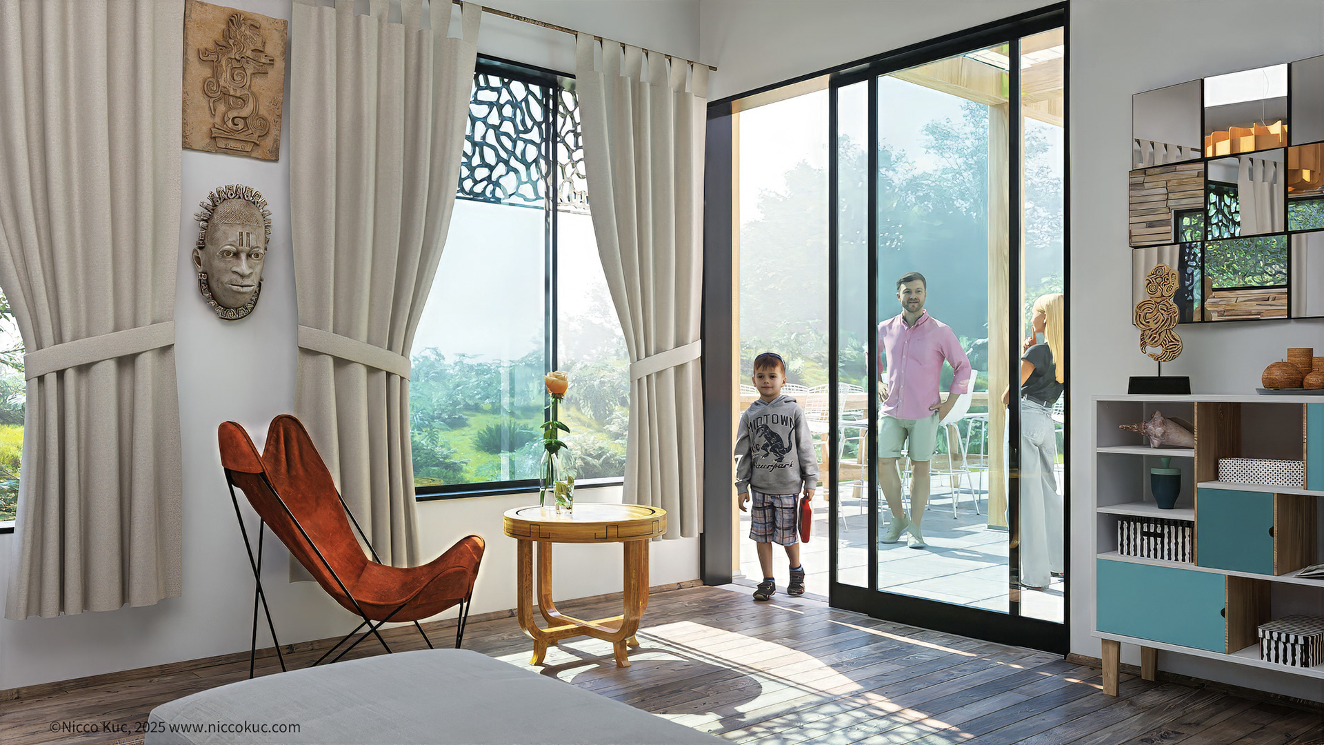 l 3D interior visualization inspired by the Zack DeVito House, showcasing the kitchen, dining room, lounge area and bedroom with a focus on realism, lighting and spatial composition. The project combines Autodesk 3ds Max for modeling, Chaos Vantage for real-time ray tracing, Chaos Anima 6 for animated characters, and Evermotion assets for high-quality furniture and interior details. The goal of this project is to demonstrate how thoughtful design, accurate materials and efficient workflows can produce photorealistic and cinematic results suitable for architecture, real estate and creative storytelling.